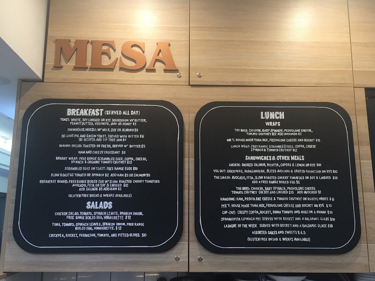 Mesa Cafe Menu